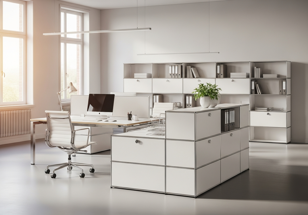 Der Ab- und Aufbau von USM Haller Möbeln erfordert Erfahrung, Präzision und das richtige Werkzeug. Wir verfügen über die entsprechenden Spezialwerkzeuge und das notwendige Know-how, um modulare USM Systeme fachgerecht zu demontieren, sicher zu transportieren und am neuen Standort exakt wieder aufzubauen.